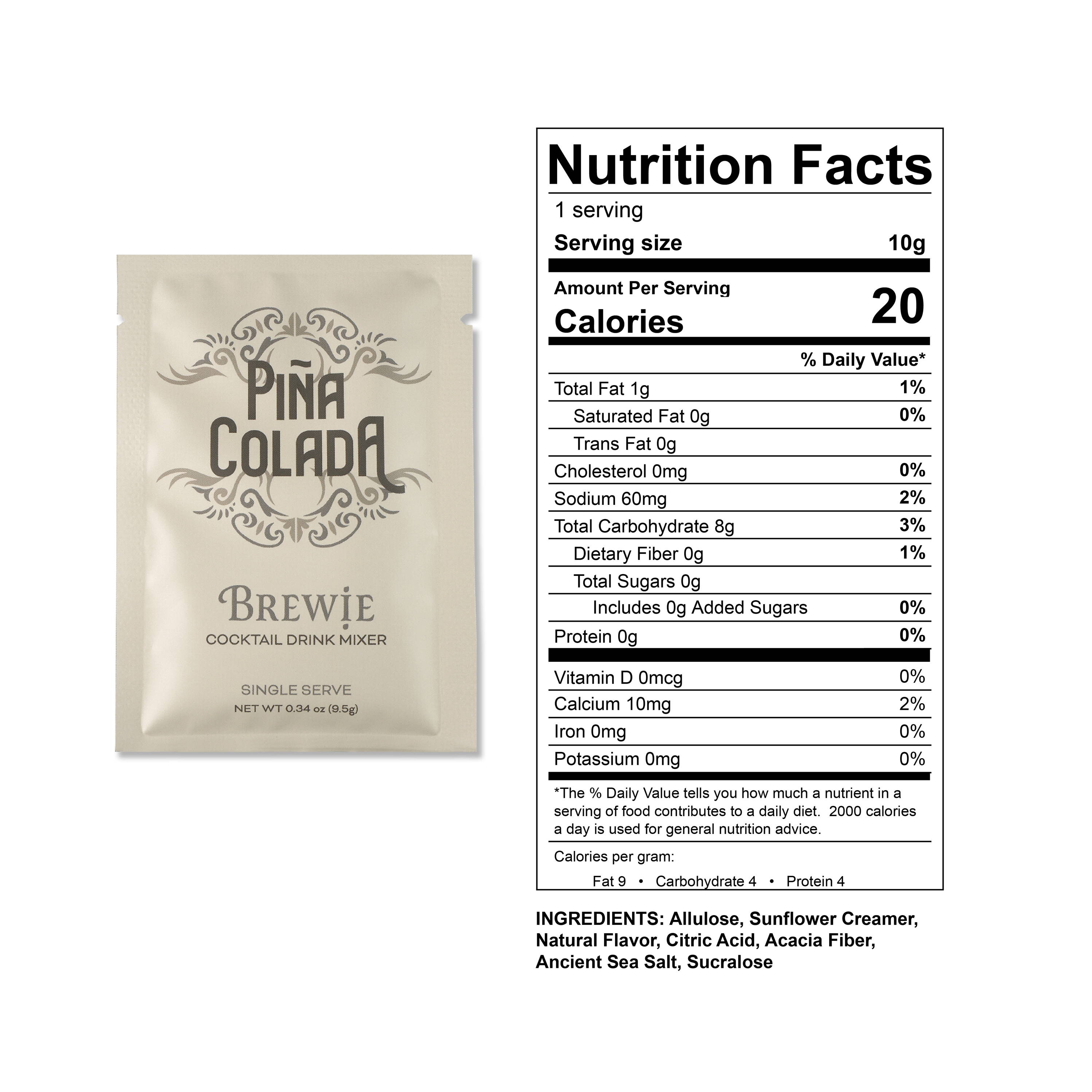 | Pina Colada | Allulose, Sunflower Creamer, Natural Flavor, Citric Acid, Acacia Fiber, Ancient Sea Salt, Sucralose |