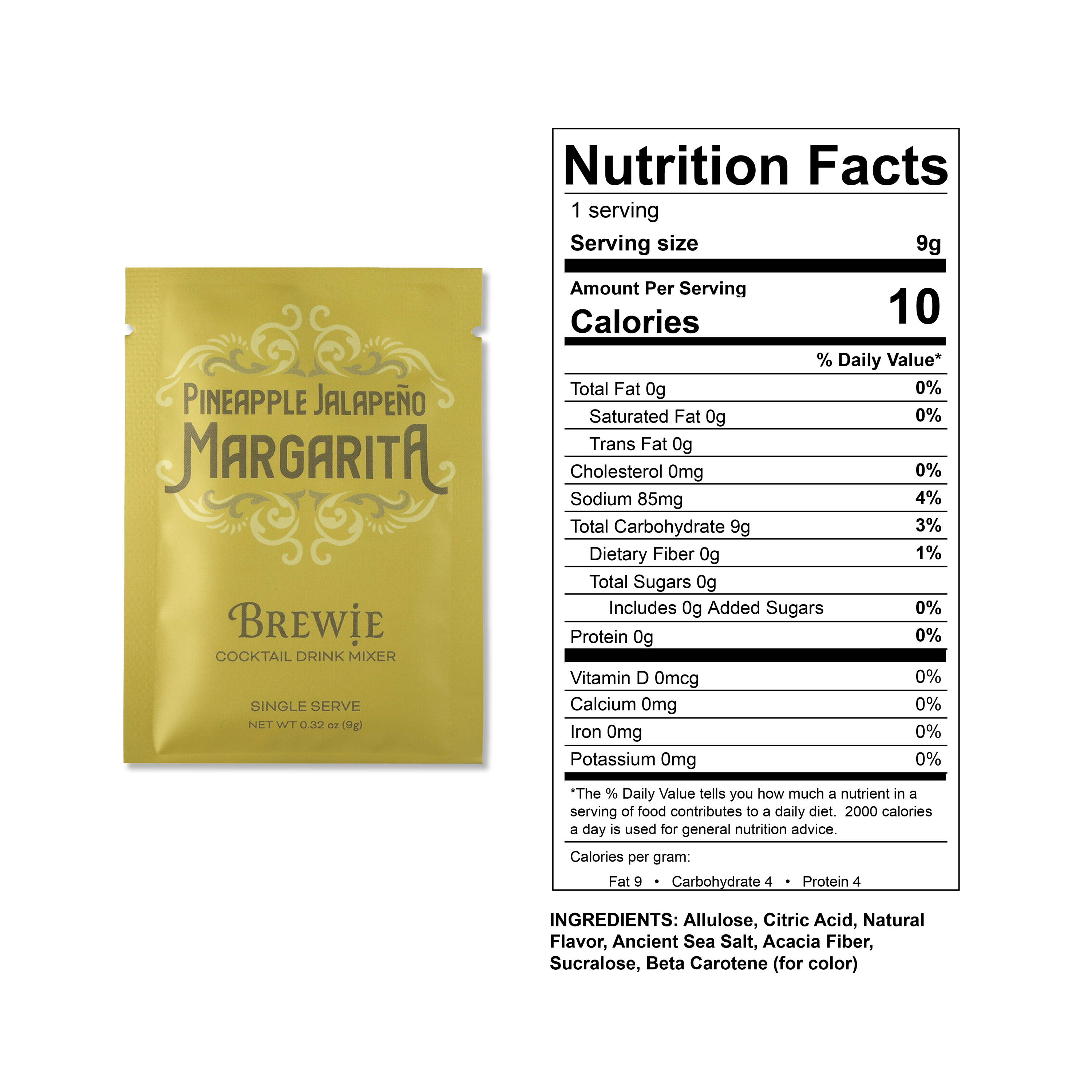 | Margarita | Allulose, Citric Acid, Natural Flavor, Ancient Sea Salt, Acacia Fiber, Sucralose, Beta Carotene (for color), Spirulina Extract (for color) |