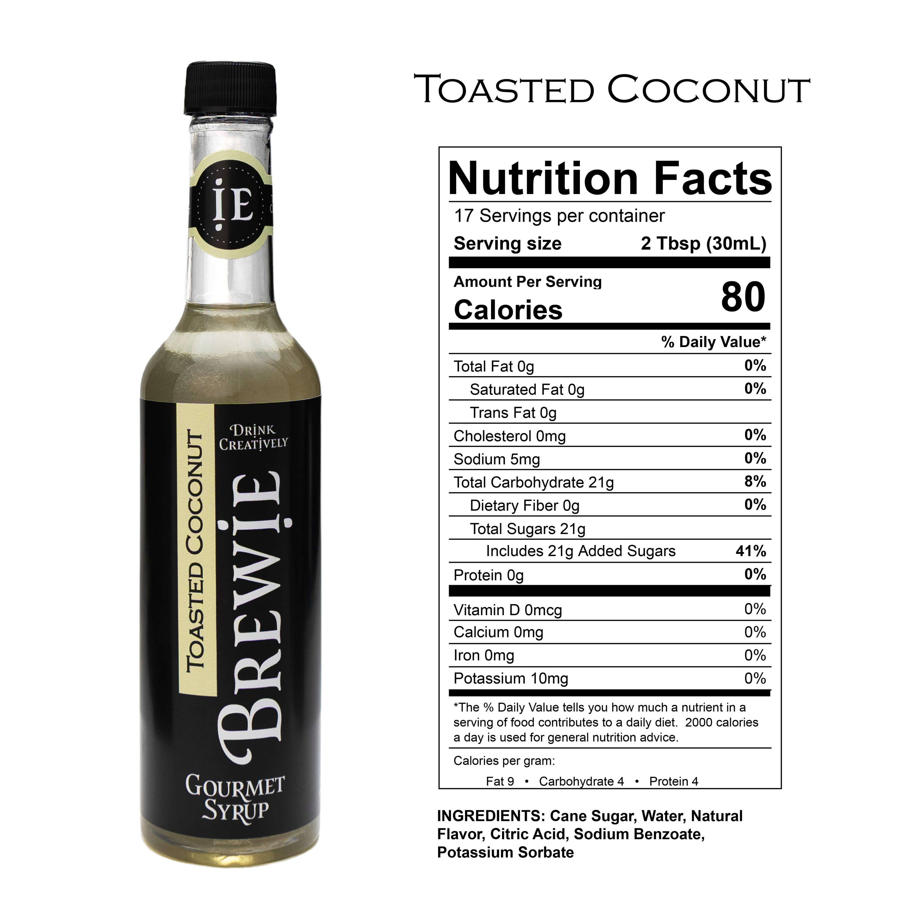 | Toasted Coconut | Cane Sugar, Water, Natural Flavor, Citric Acid, Sodium Benzoate, Potassium Sorbate |