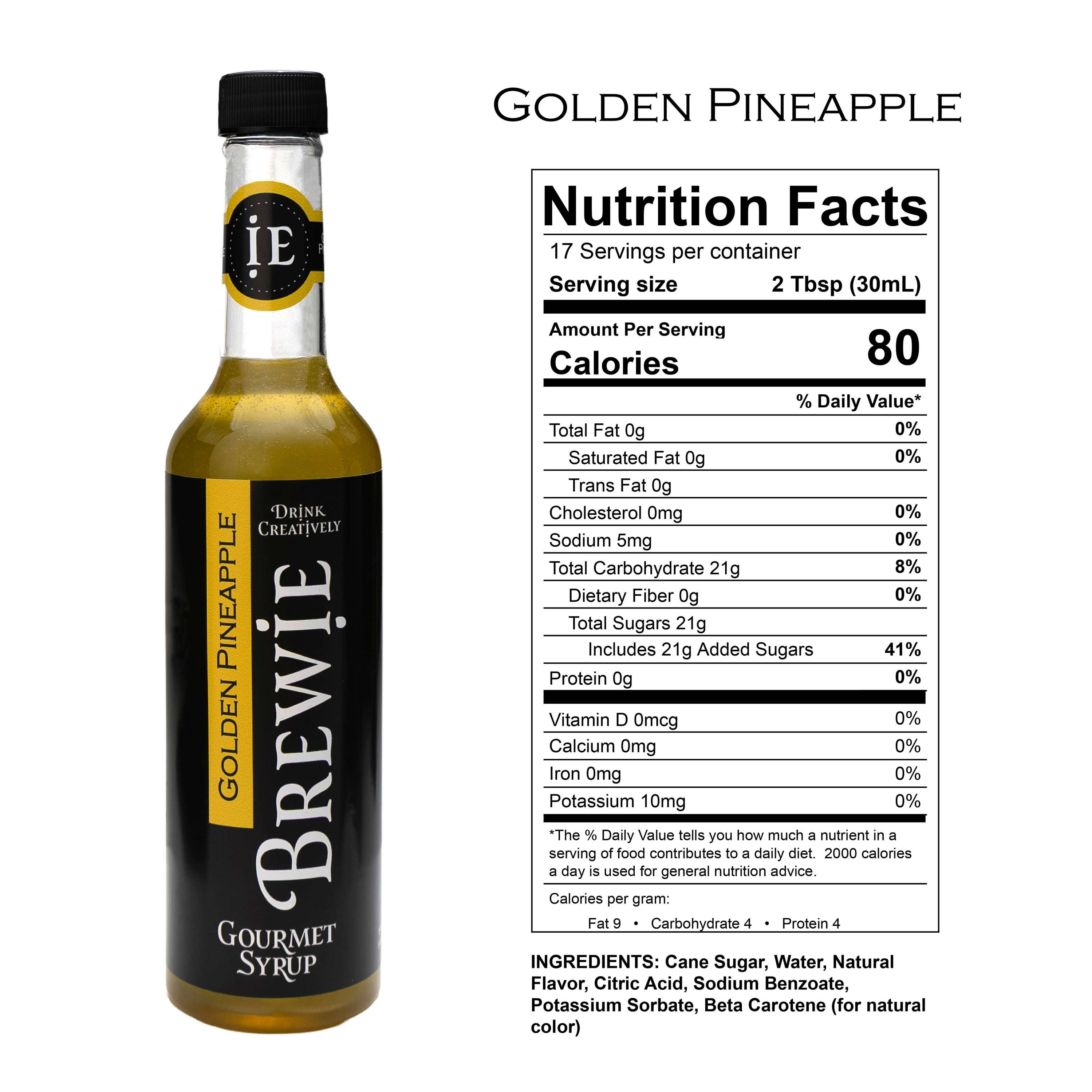 | Golden Pineapple | Cane Sugar, Water, Natural Flavor, Citric Acid, Sodium Benzoate, Potassium Sorbate, Beta Carotene (for natural color) |