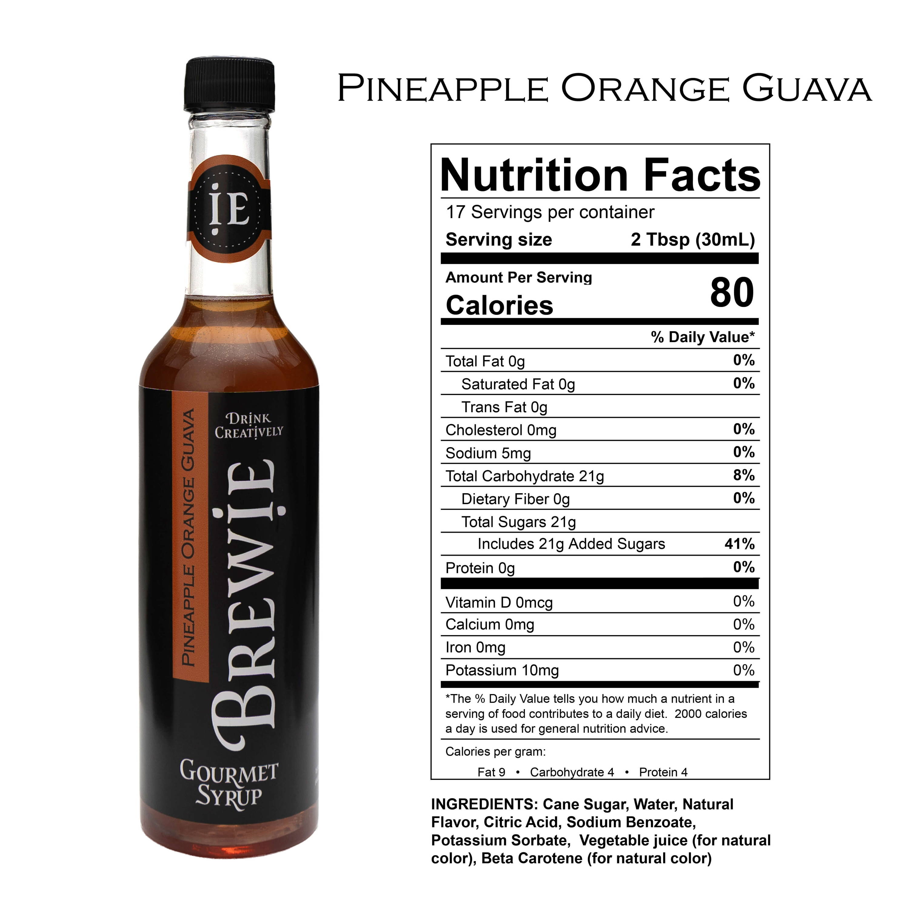 | Pineapple Orange Guava | Cane Sugar, Water, Natural Flavor, Citric Acid, Sodium Benzoate, Potassium Sorbate, Vegetable juice (for natural color), Beta Carotene (for natural color) |
