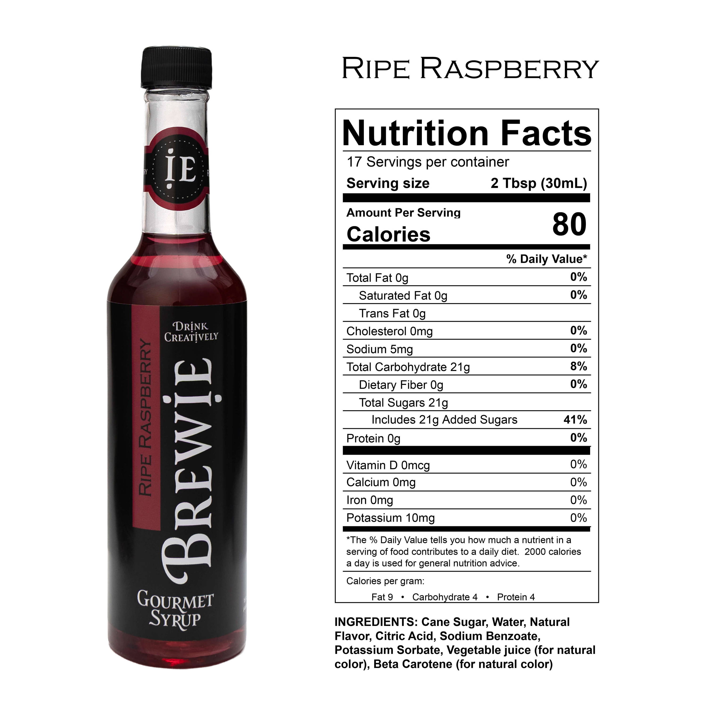 | Ripe Raspberry | Cane Sugar, Water, Natural Flavor, Citric Acid, Sodium Benzoate, Potassium Sorbate, Vegetable juice (for natural color), Beta Carotene (for natural color) |